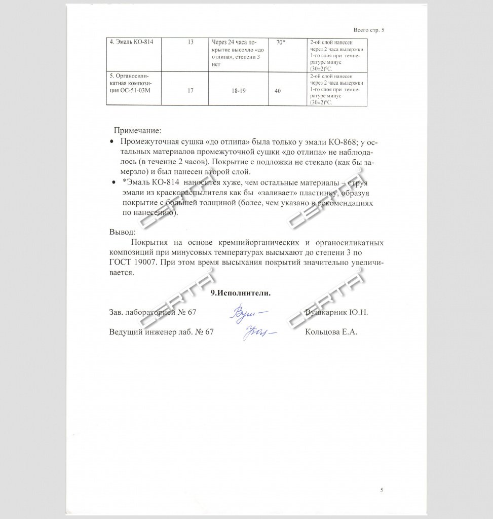 Отчет ЯрНИИ о возможности нанесения органосиликатной композиции ОС-12-03 при температуре −30 °С